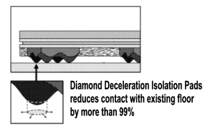 • Isolation pads raise floor up off of cold concrete surfaces –